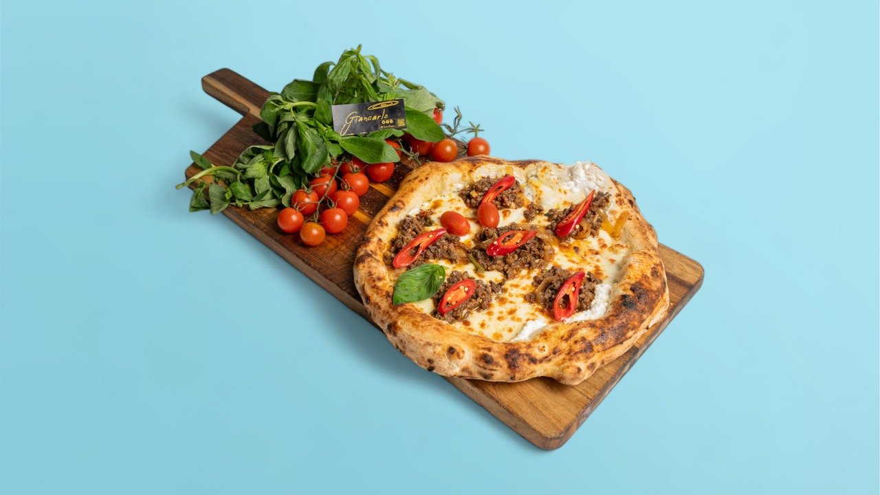 Mozzarella fiordilatte, boeuf basilic thai, huile d’olive extra vierge, basilic frais et chili