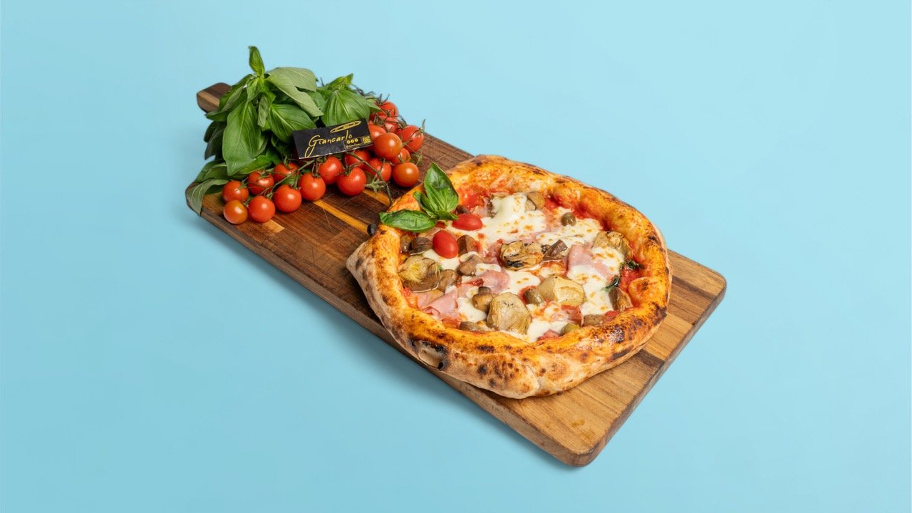 Datterino Rosso, mozzarella fiordilatte, champignons, huile d’olive extra vierge et basilic frais